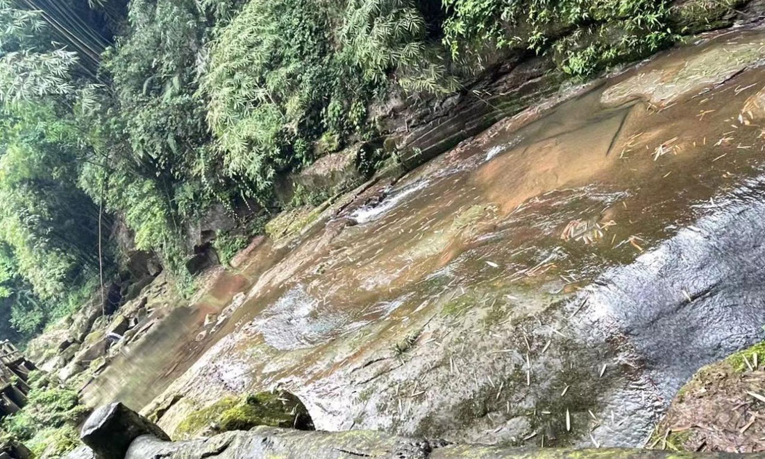 伴隨著明媚的陽光,我們沿著山間小路徐徐前進,漫步于林間曲徑,坐臥于溪邊石側,陶醉在清心爽目的大自然中。一路走過了一聞人聲就飛流直下的應聲泉、系滿祈福絲帶的緣定橋、煙霧繚繞的山泉霧境、相思崖、高空全景走廊等,一路走走停停,談笑風生,顧不得汗流浹背,興致勃勃的爬到了山頂。