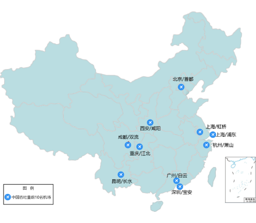2019年我國旅客吞吐量前10名機場分布