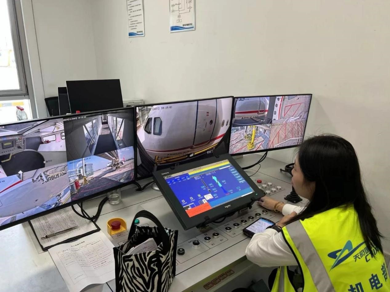 不僅如此,全自動登機橋的保障也更高效。據(jù)統(tǒng)計,全自動登機橋接靠橋在50秒左右完成,退橋時間則在30秒左右完成,這樣就避免了航班密集或是人員工作任務繁重導致的等待靠接和等待撤離時間長的情況。旅客在飛機上等待的時間越短,乘機體驗自然就越好。要知道,如果是人工操作登機橋,接靠橋時間在80秒左右,退橋時間在50秒左右。記者在監(jiān)控室看到,只要在控制中心通過實時視頻就可以操作L4級登機橋,單人可同時操控6座全自動登機橋,實現(xiàn)了真正意義上的無人駕駛,極大地提升了服務保障效率。