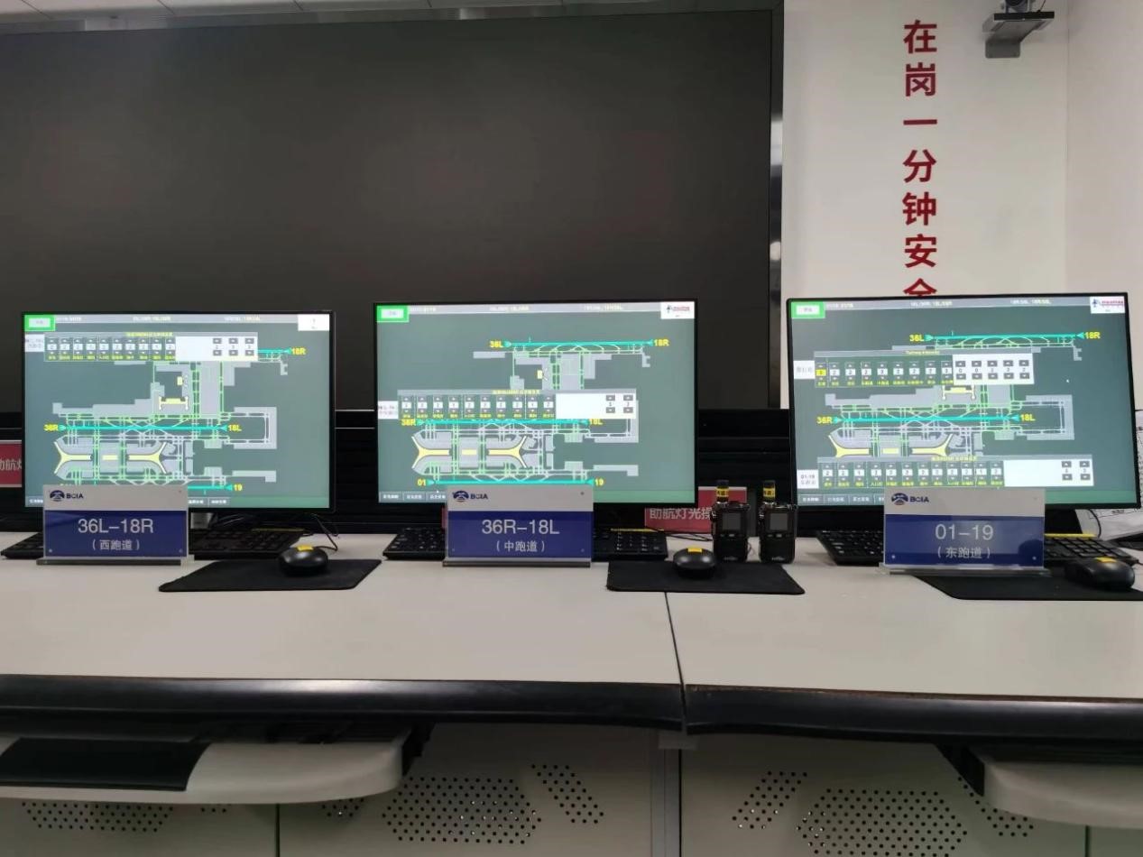 在烏魯木齊機(jī)場(chǎng),助航燈光系統(tǒng)包括站內(nèi)的1120千伏安柴油發(fā)電機(jī)組、320千伏安不間斷電源(UPS)電池組、26面低壓配電柜、39臺(tái)調(diào)光器、10臺(tái)切換柜、1套燈光單燈監(jiān)控和操作系統(tǒng)以及站外的39條助航燈光供電回路、5286套助航燈具、310面標(biāo)記牌、54基高桿燈和1套停止排燈系統(tǒng)。在北京大興機(jī)場(chǎng),4座助航燈光變電站、1個(gè)助航燈光監(jiān)控中心、299條助航燈光回路、32000余盞助航燈具在助航燈光管理單位與管制、飛行單位的合作下,實(shí)現(xiàn)了A-SMGCS(高級(jí)場(chǎng)面活動(dòng)引導(dǎo)和控制系統(tǒng))IV級(jí)自動(dòng)燈光引導(dǎo)。