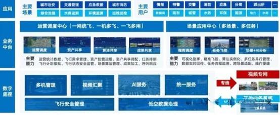 城市治理與公共服務(wù)以政務(wù)“一網(wǎng)統(tǒng)飛”平臺為核心,旨在解決各部門無人機應(yīng)用“多頭建設(shè)、資源分散、資產(chǎn)閑置”的問題。該平臺由政府主導(dǎo)建設(shè),采用“前端統(tǒng)設(shè)備、中端統(tǒng)需求、后端統(tǒng)數(shù)據(jù)”的三層統(tǒng)管模式,整合分散的無人機資源與數(shù)據(jù),實現(xiàn)跨部門協(xié)同調(diào)度與高效治理,探索“一網(wǎng)統(tǒng)飛、智慧高效”的城市治理新模式。